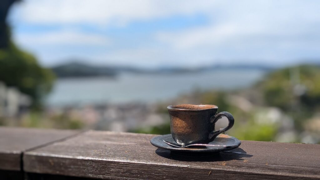 旅の後半は、海辺のカフェで休憩を。アンティークな店内とこだわりの珈琲がおすすめの喫茶店です。