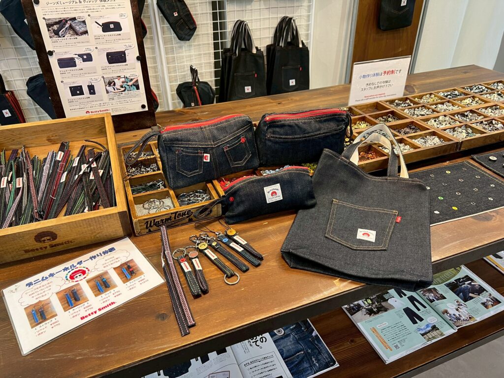 児島の文化を語るうえで欠かせないのがデニム。ベティスミスでは、職人の作業風景さながらに小物作り体験ができます。整った縫製、丁寧な手仕事、積み重ねられた技術。デニムが“ファッション”である前に“文化”であることを教えてくれる貴重な空間です。