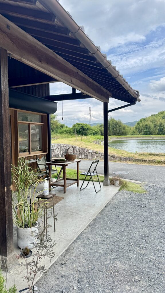 テラス席では、池を眺めながらのんびり過ごせます。風が気持ちよくて、思わず長居したくなる心地よさ。